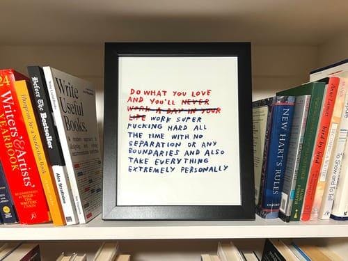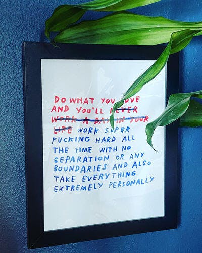 Do what you love and you'll work super f*cking hard all the time with no separation or any boundaries and also take everything extremely personally. :)