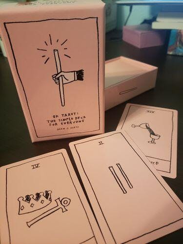 An inclusive and minimal tarot deck that’s open to interpretation. "OK" illustrations offer a fresh perspective (and no spooky dead guys!) so anyone can find themselves represented within.